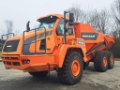 DOOSAN DA30-5 articulated dumper, robust and high-performance, perfect for transporting materials on demanding construction sites. Built in 2017, with 7,858 operating hours, it is ready to work and in excellent condition.