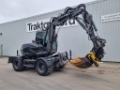 Hjulgrävare utrustad med Stbm frontlyft, schaktblad, extra hydraulik, hydrauliskt snabbfäste S45, Engcon rotortilt med grip, DC2 hjulstyrning med Mig Spakar, 4hjulstryrning, krabbstyrning, 2hjulstyrning, tipputtag i fram och bak medmultifaster, k80drag fram och bak, twindäck , c-smörjning, dieselvärmare, ac, solfilm, luftstol, extra arbetsbelysning, ljusramp, delbar bom med grävelegans