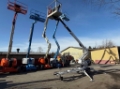 Utrustning: Hydraulisk hjuldrift (självgående), kontinuerlig bomrotation, eluttag i korg.