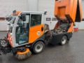 3. Front-Tellerbesen,Ø 800 mm, links und rechts schwenkbar mit hydraulischer Neigungsverstellung, mit Hydraulikblock, fixe Hydraulikleitungen. Ansteuerung durch Joy Stick auf Armlehne, durch welchen die Bewegungen des Front- und der Seitenbesen sowie Rückwärtsfahrt angesteuert werden können. Saugschlauch, 4,8 m lang (inkl. Saugrohr 800