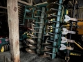 Fullt med tallrikar och pinnar men tallrikarna är slitna