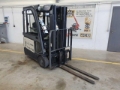 Crown SCT 6020-1.3 electro forklift, 3x available, year of manufacture: 2016, working hours: 2.747h, pre-owner: Bundeswehr, rear window is missing, lifting capacity: 1.300kg, lifting high: 4.300mm, hydr. side shifter, triplex boom, cabin with heating, transport height: 2.000mm, battery 06/2020, included charger, STVZO lights, very good condition!, ready for work,