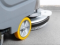 The machine's design makes it highly maneuverable. The small turning radius allows for operation even in narrow passages and alleys. The parabolic squeegee beam ensures precise suction of the solution from the cleaned surface.