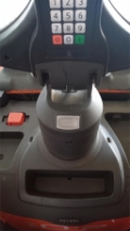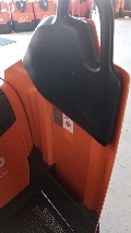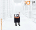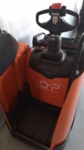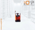 Plattform Kühlhaus, manuell hochklappbar; feste Seitenschutzwände mit kleiner Deichsel; Servolenkung, 8 km/h Version; Gleitschienen inkl. Kletterrolle; Gabelrollen Einfach, Stützrad doppelt; PIN-Code; Batterie Schnellverriegelung; blaues Warnlicht nach hinten gerichtet