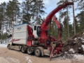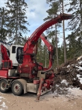 Mycket välhållen huggbil med högtippande flisbalja på bilen som har gått endast 9500 mil. Kan ses i drift.
