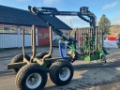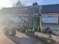 Vagn 9 ton med ramstyrning, hjul 400/60-15.5, hydrauliska teleskopstödben, 3 bankar, kran 6m med utskjut och radiostyrd vinsch, 2 spak + 3 el on&off ”lättvikt” , servad och genomgången