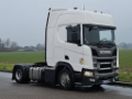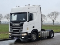 Number of axles: 2, Configuration: 4x2, Own weight: 8738 kg, Gross vehicle weight: 18000 kg, Total fuel capacity: 1500 litre, 2nd fueltank, Fifth wheel height: 114 cm, fifth-wheel: Fixed, Diff. locks: 1, Suspension type: air suspension, Cabin type: Highline, Cruise control, Tacho, Digital tachograph, Airconditioning, Parking heater, Electric windows, Electric mirrors, Radio/cassette, Color: white, Heated mirrors, Lighting type: Halogen lamps, Laneassist, Climatecontrol, Seat heating, Bluetooth, Flashing lights, Engine capacity: 331 Kw (444 Hp), Fuel type: diesel, Euro: 6, Gearbox kind: Opti-cruise, Gearbox make: Scania, Number of Gears: 12, Add. break system, Retarder make: Scania, Power steering, ABS, ASR, Starter battery, Central locking, Seats configuration: 1+1, Seat cover: cloth, Chair adjustment: Manually