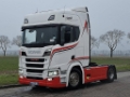 Number of axles: 2, Configuration: 4x2, Own weight: 8073 kg, Gross vehicle weight: 21000 kg, Total fuel capacity: 625 litre, Fifth wheel height: 119 cm, fifth-wheel: Fixed, Diff. locks: 1, Suspension type: air suspension, Cabin type: Sleeping cabin, Cruise control, Tacho, Digital tachograph, Airconditioning, Parking heater, Electric windows, Electric mirrors, Radio/cassette, GPS navigation, Color: Multicolored, Heated mirrors, Lighting type: Led lamps, Laneassist, Climatecontrol, Seat heating, Bluetooth, Engine capacity: 331 Kw (444 Hp), Fuel type: diesel, Euro: 6, Gearbox kind: Opti-cruise, Gearbox make: Scania, Number of Gears: 12, Add. break system, Retarder make: Scania, Power steering, ABS, ASR, Starter battery, Central locking, Seats configuration: 1+1, Seat cover: leather, Chair adjustment: Manually