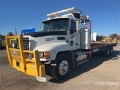 Mack E7 6 Cylinder Diesel 435 hp Engine, 10242 Engine hrs, Engine Brake, Eaton Fuller 18-Speed Manual Transmission, Differential Lock, 295/80R22.5 Front Tires, 11R22.5 Rear Tires, Air Ride Suspension, 6950 mm Wheelbase, PTO, Hydraulic System, 7200 mm x 2480 mm Bed, Container Pins, Winch, GVM 24.7 t